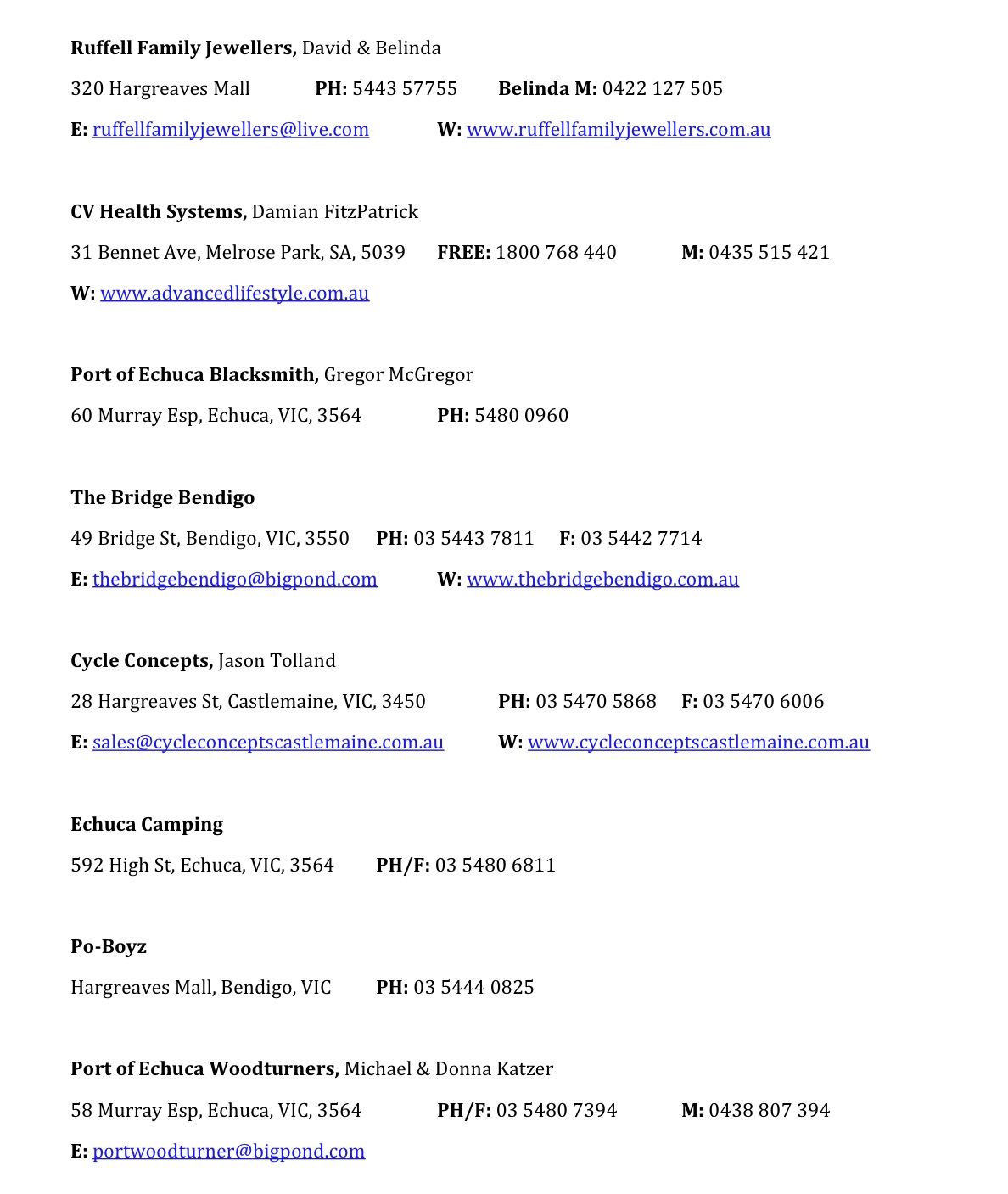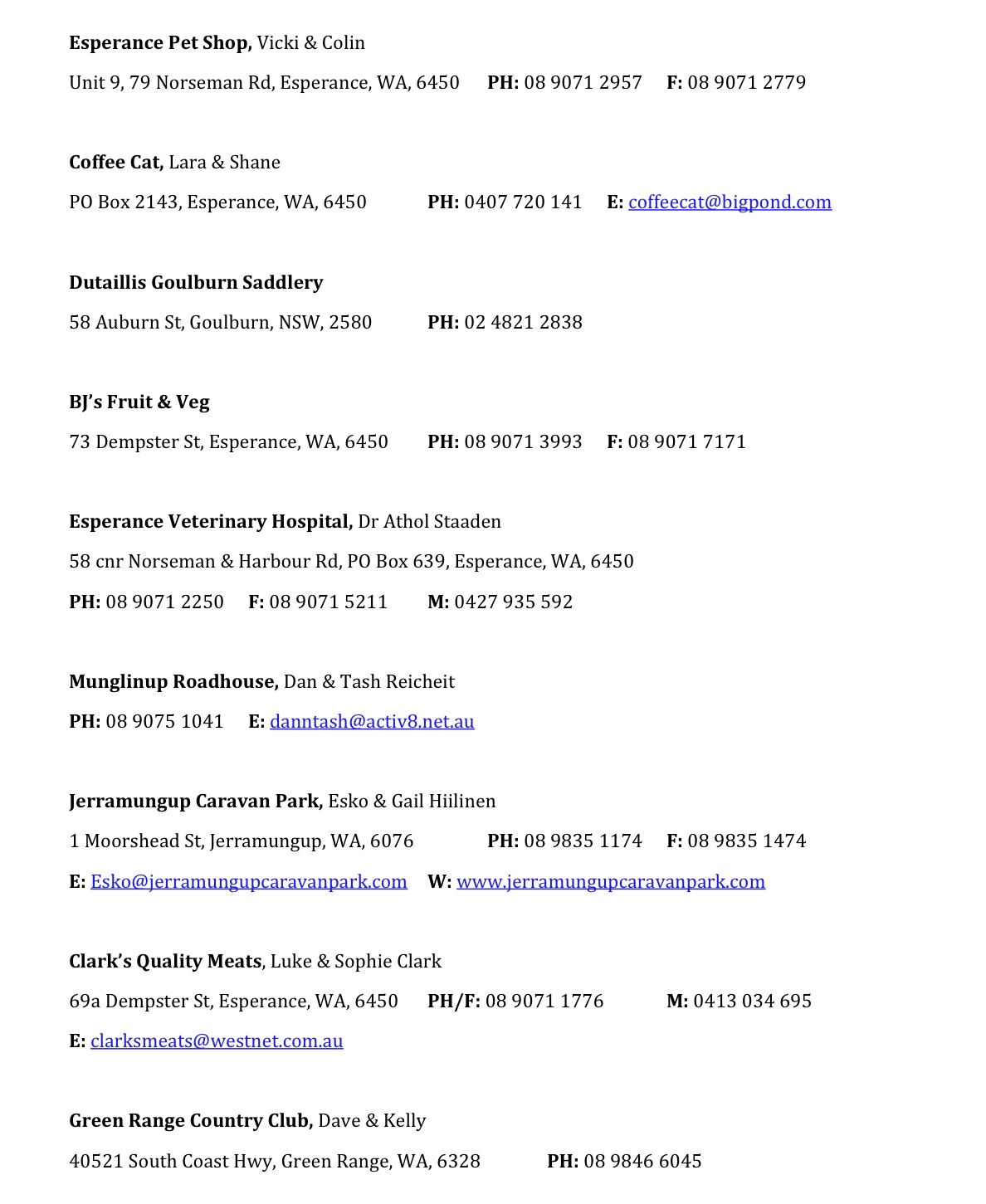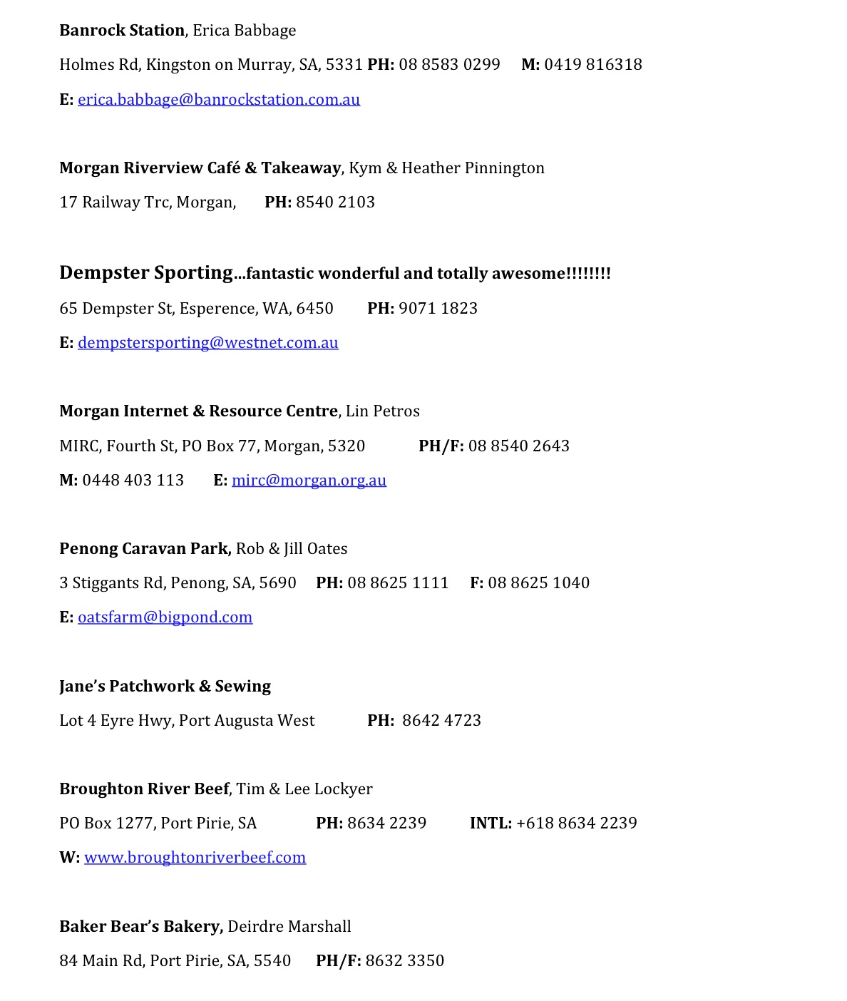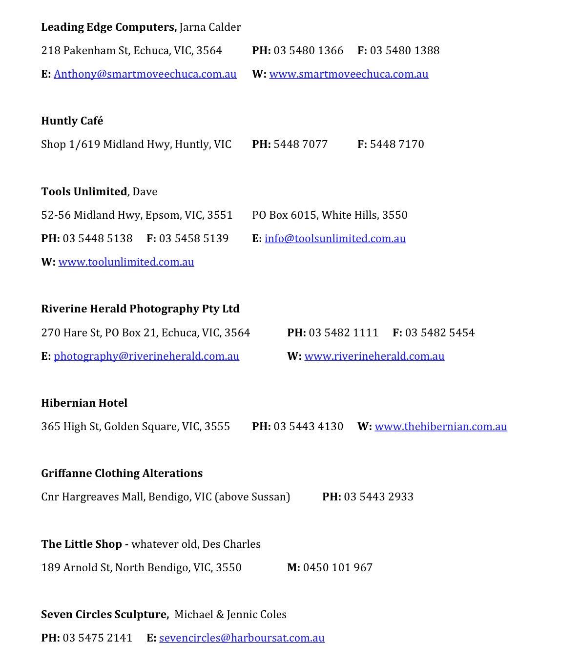 Please note email and website addresses do not link to external sites/mail, sorry for any inconvenience