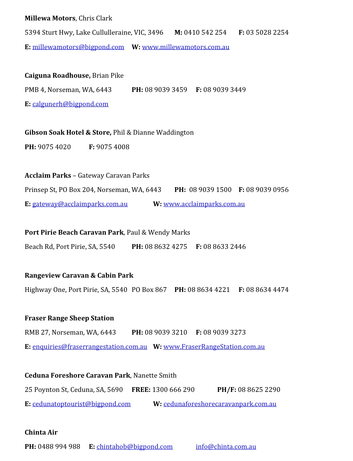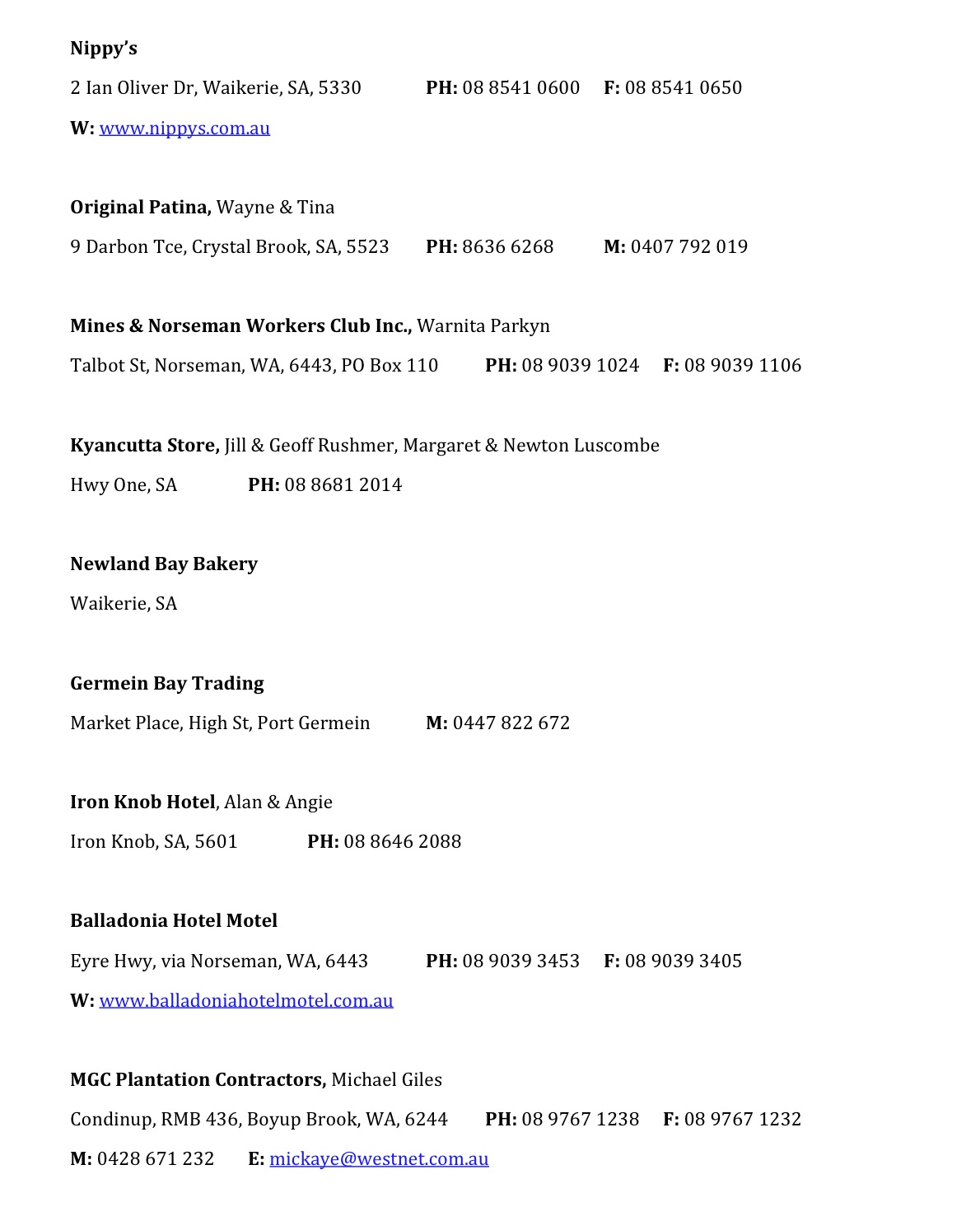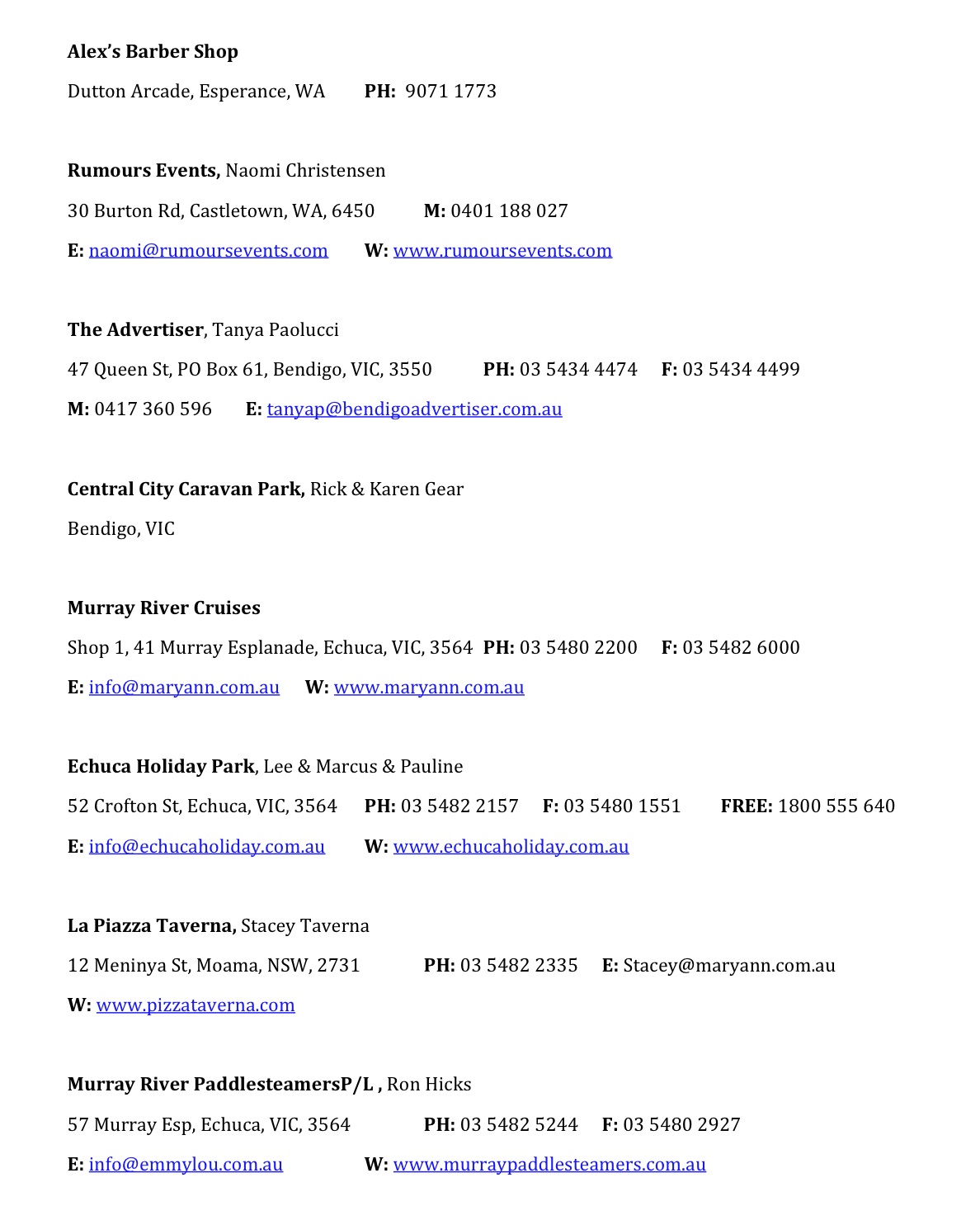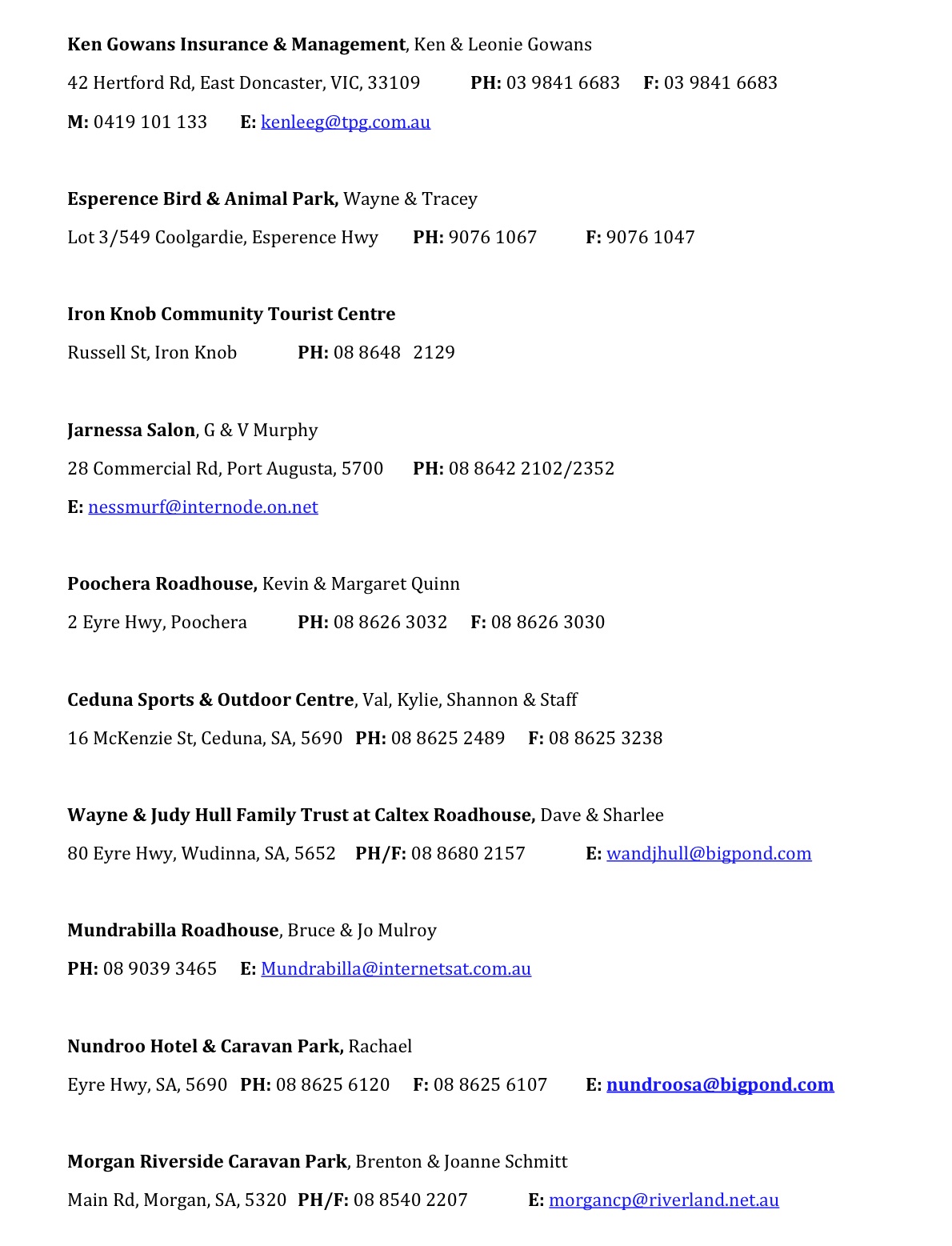Please note email and website addresses do not link to external sites/mail, sorry for any inconvenience